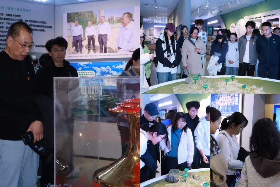 宁夏生态环境展示馆作为全区首座系统展示生态文明建设成就的场馆,集陈列、科普、互动、宣传教育于一体。在参观过程中,党员们通过多媒体互动演示、实物模型展示以及沉浸式的视听体验,全方位了解了宁夏在生态屏障建设、环境综合治理及绿色发展理念探索等方面取得的显著成效。展馆内丰富多样的展示形式,将抽象的生态理念转化为直观的视觉冲击。从防沙治沙的历史记忆到如今绿意盎然的生态图景,师生党员们在走、看、听、感中,深刻领悟了“绿水青山就是金山银山”这一发展理念的科学内涵与时代价值。